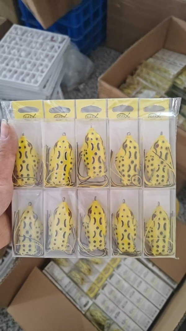 DESCRIPIÓN: se utiliza epecialmente en la pesca de peces depredadores como el bass, para imitar el movimiento de una rana real. Estos señuelos suelen ser blandos y flexibles, lo que les permite moverse de manera natural en el agua, atrayendo a los peces hacia el señuelo. El látex es un material popular porque proporciona una buena acción de natación y resistencia, y los señuelos de rana, en particular, pueden ser efectivos cuando se utilizan en áreas con vegetación densa o en aguas superficiales, donde las ranas suelen estar presentes. El movimiento del señuelo, combinado con su forma realista, puede resultar irresistible para los peces depredadores.